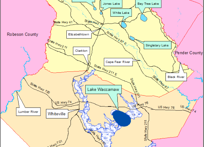 Many are marshy; a few of the larger ones are (or were before drainage) lakes; 36 square km (14 square mile) Lake Waccamaw is an undrained one.